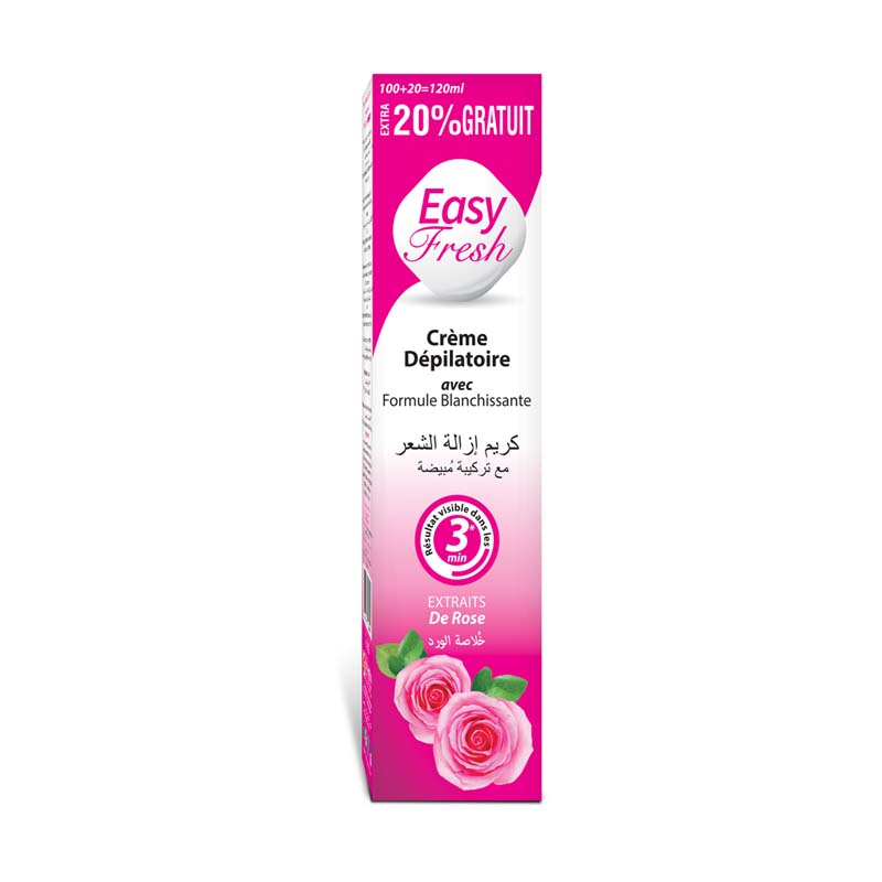 Description: Use Easy Fresh Hair Removal Cream (Rose) to obtain smooth skin and shine for a longtime. It contains ingredients that break down the hair shaft, making it easier to remove. The creams can be used on any area of the body. It takes just 3-6 minutes to remove the unwanted hair and provides you with a luxurious and smooth texture of skin by working near to the root of your hair. The hair removal lotion can be applied anywhere on your body, where other hair removal instruments can’t reach to get rid of extra hair, which makes you comfortable for removing hair at home with no hassle of going to the salons.