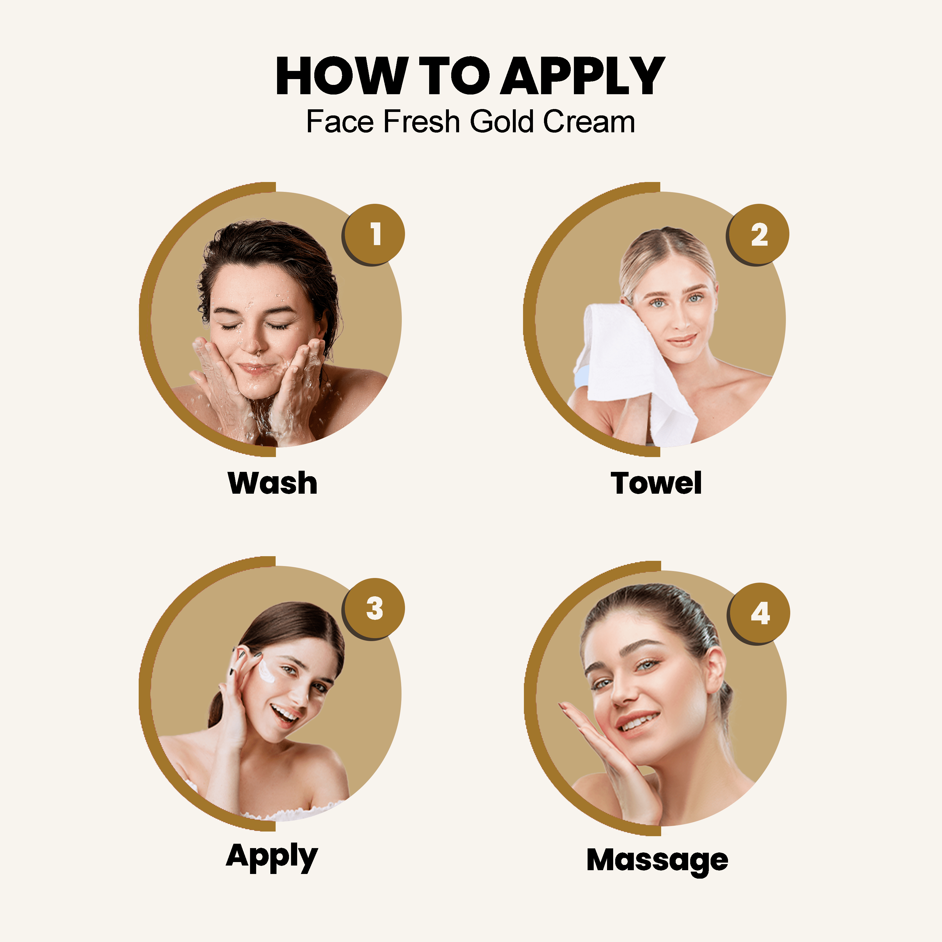 Cleanse your face using a Face Fresh Cleanser Face Wash. Pat your face dry with a clean towel. Dispense a small amount of Face Fresh Gold Plus Beauty Serum onto your fingertips. Gently massage the serum onto your face and neck in circular motions, avoiding the eye area. Allow the serum to absorb into your skin for a few minutes before applying your Face Fresh Gold Plus Beauty Lotion or other skincare products.