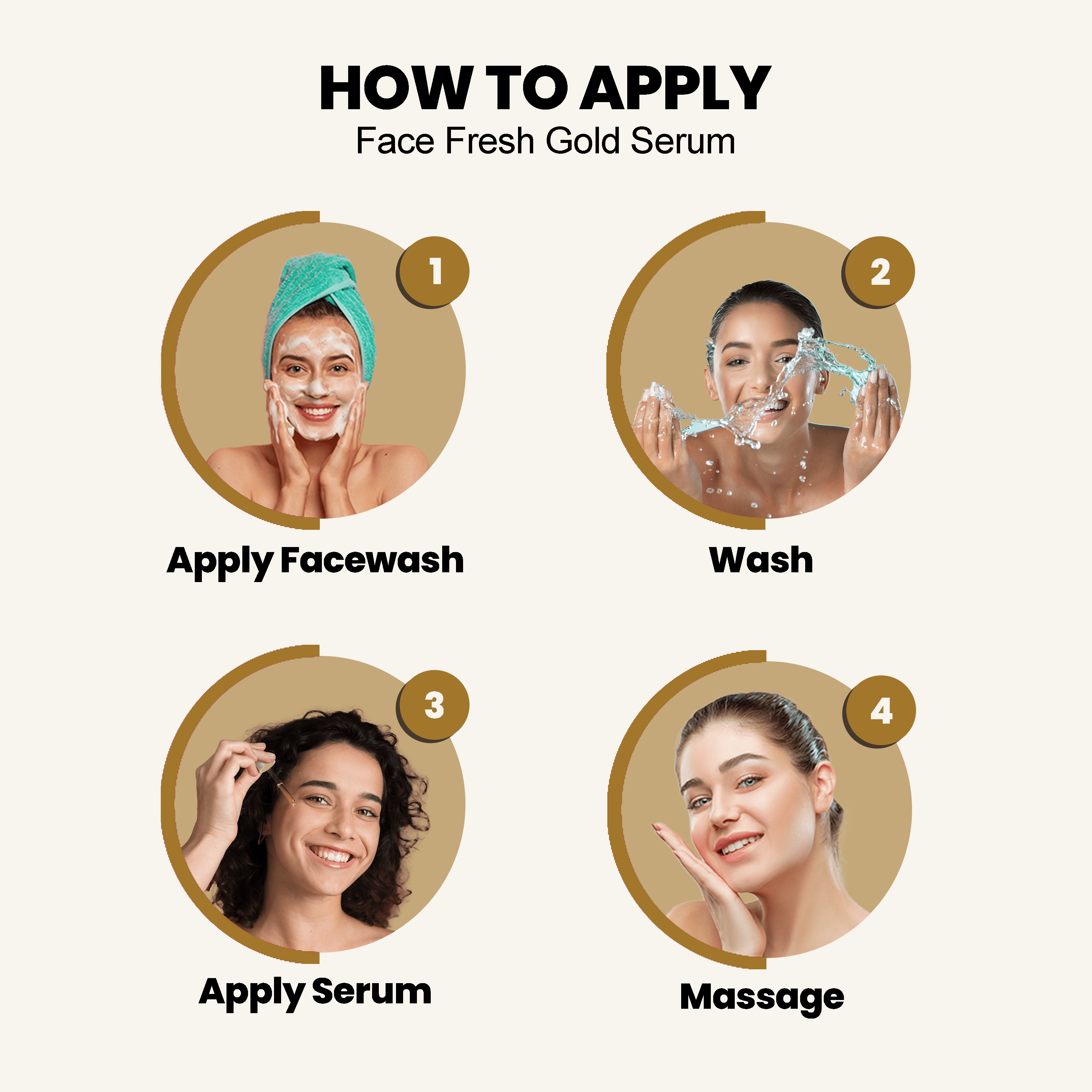 How to use it: Cleanse your face using a Face Fresh Cleanser Face Wash. Pat your face dry with a clean towel. Dispense a small amount of Face Fresh Gold Plus Beauty Serum onto your fingertips. Gently massage the serum onto your face and neck in circular motions, avoiding the eye area. Allow the serum to absorb into your skin for a few minutes before applying your Face Fresh Gold Plus Beauty Lotion or other skincare products.