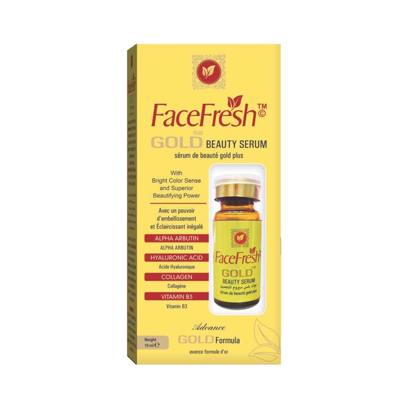 Face Fresh Gold Plus Beauty Serum is a skin care product that is designed to be applied to the face and neck to improve the appearance and health of the skin. It is made with a variety of active ingredients that are meant to address specific skin concerns, such as fine lines, uneven skin tone, and dryness.